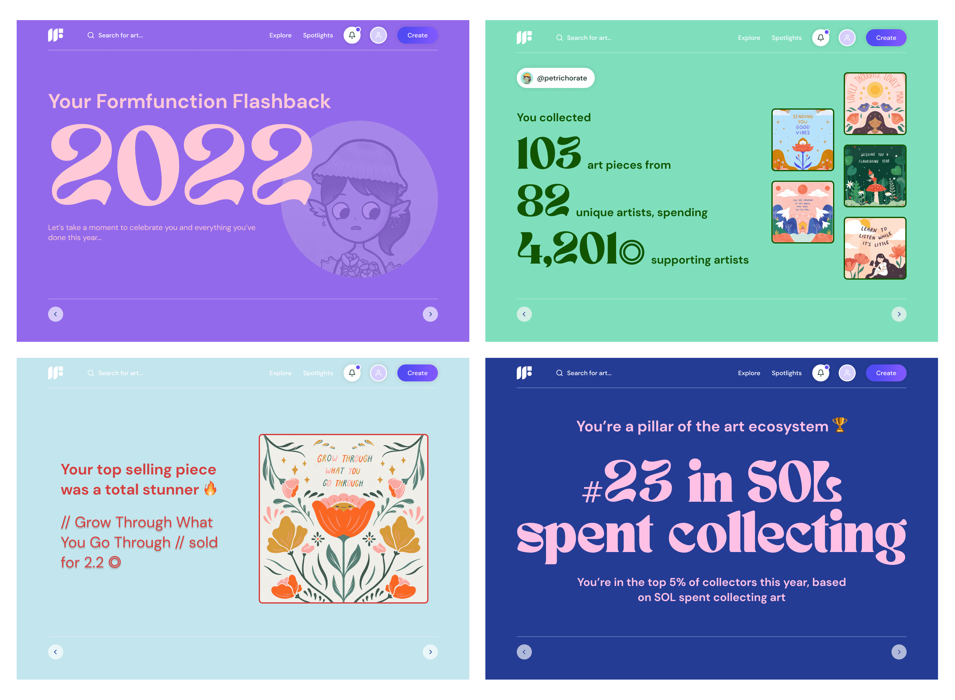 We held two or three Twitter spaces a week to hear from our community members, and it was amazing to hear how Formfunction impacted their lives (directly quoted, with permission from the artist):